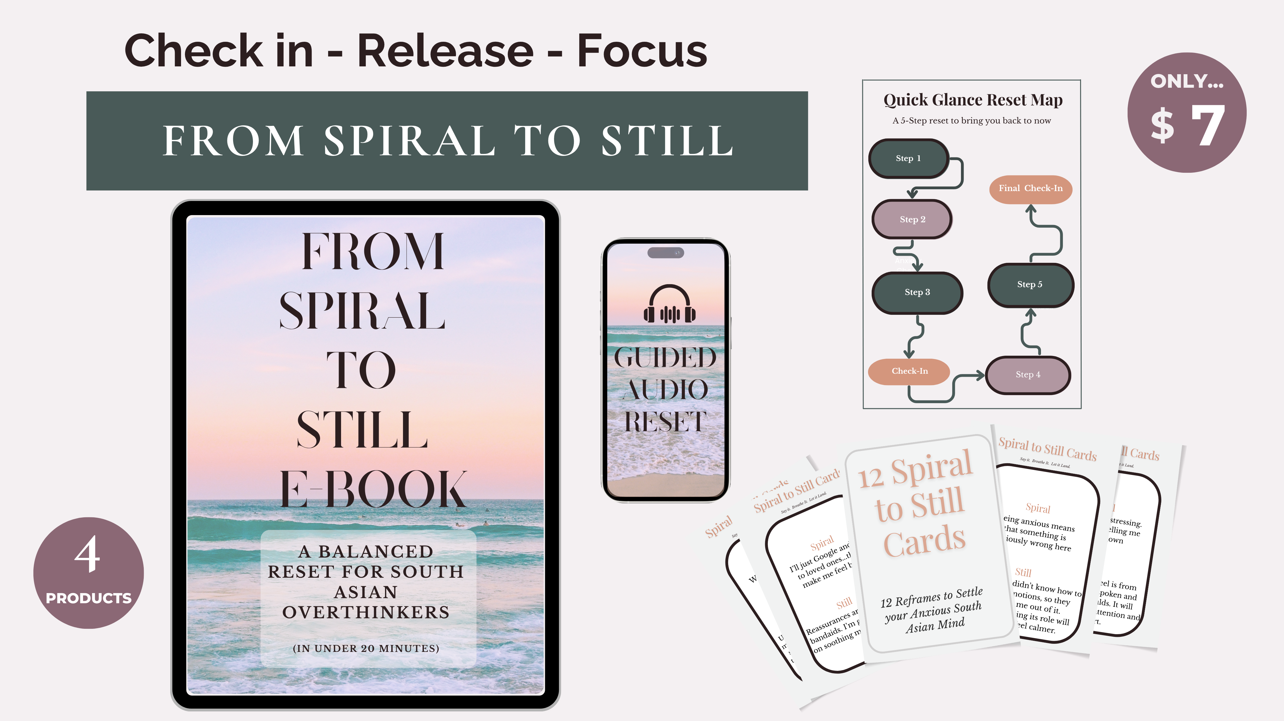 Spiral to Still is designed for anxious, high-achieving South Asian minds who can’t stop spiralling.